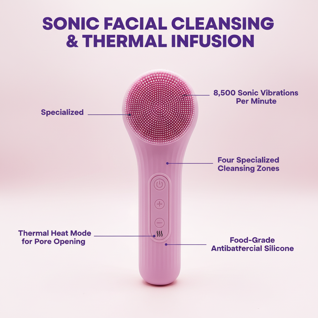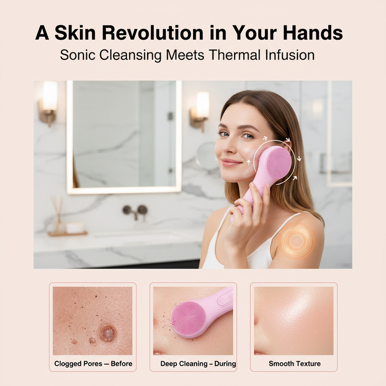 This isn't just a brush; it's a skin revolution. Featuring ultra-soft silicone bristles, four distinct cleaning zones, and a thermal back-plate, it’s designed to lift impurities, boost circulation, and make your skincare work ten times harder for you. No more redness, no more irritation—just soft, bouncy skin.